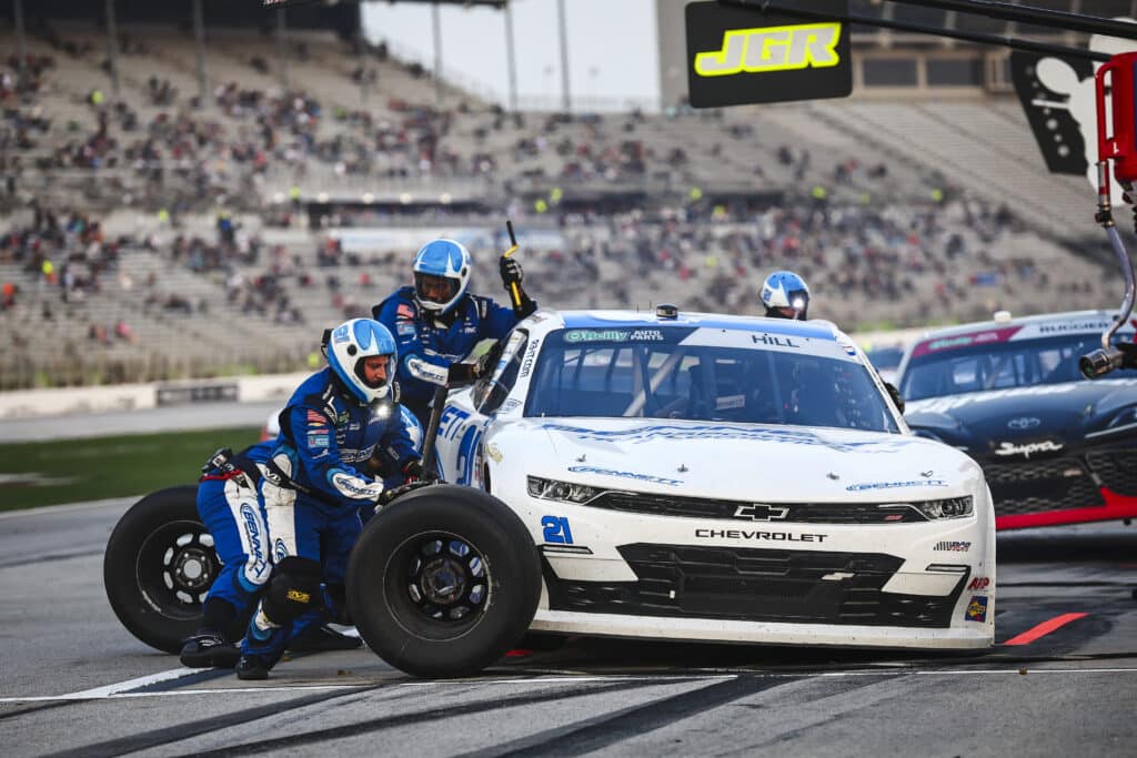 The No. 21 Bennett Chevrolet has a new pit crew this season, successfully conducting a tire change during a mid-race pit stop.